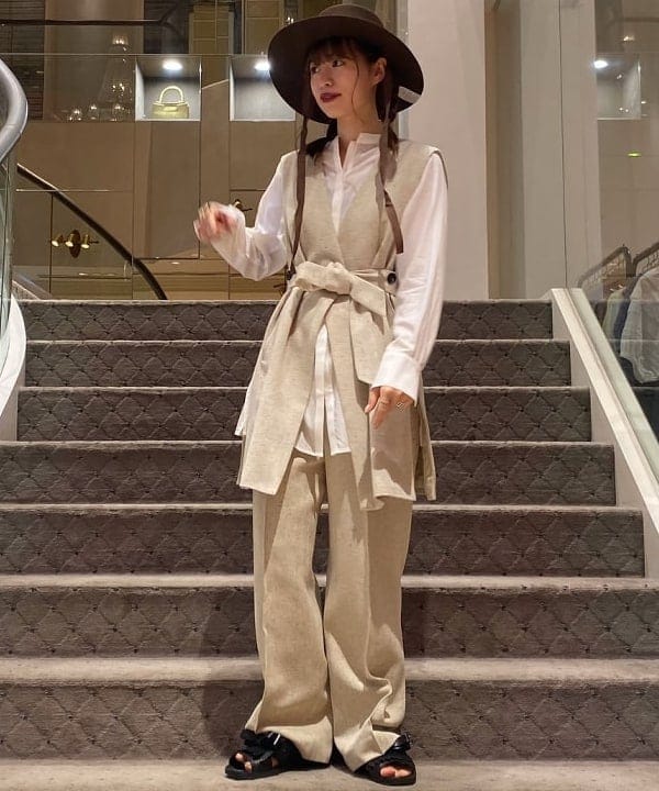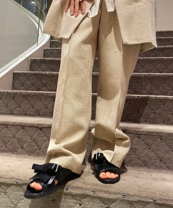 BLACKには、インナーやサンダルで軽いカラーを合わせると印象が変わりますね。