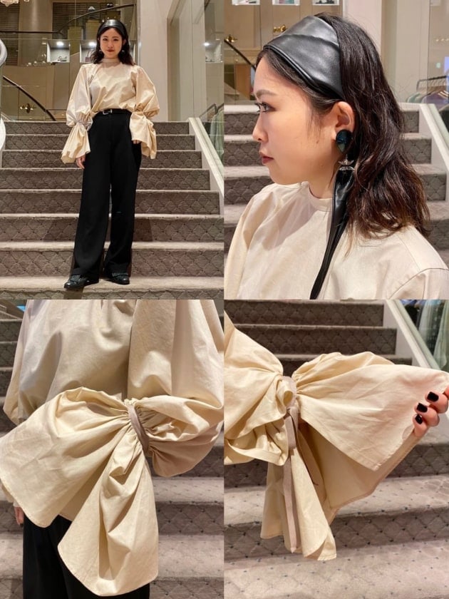 シャーリングギャザーが作り出す動きのある女性らしいシルエットが特徴です。