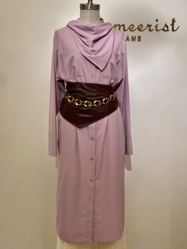 ギャザーディテールがありながらも、すっきりと落ち感のある女性らしいシルエットを演出します。