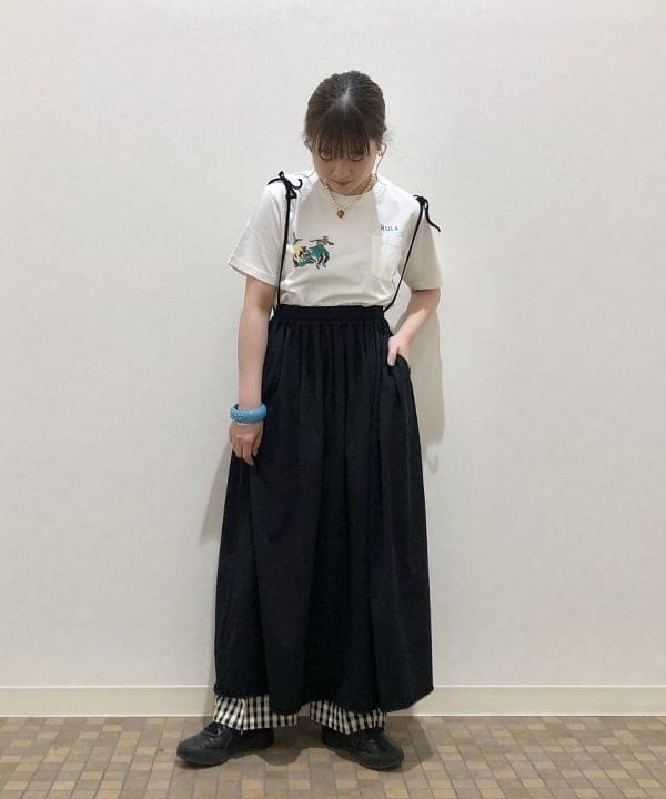 ジャストサイズはSサイズですが、今回のようにワイドフィットのトップスと合わせられるなら場合はサイズアップもオススメです。