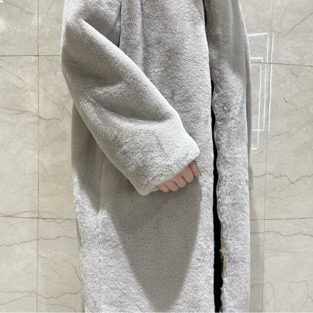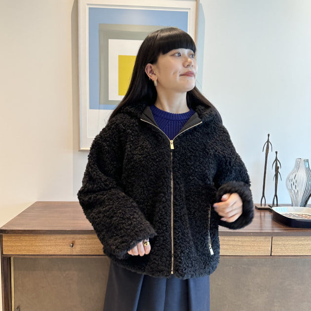 ラビットファー調エコファーを使用したフード付きブルゾンです。