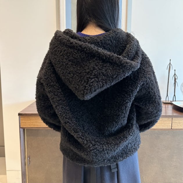 リアルファーのような風合いが魅力のフェイクファーフーディーです。