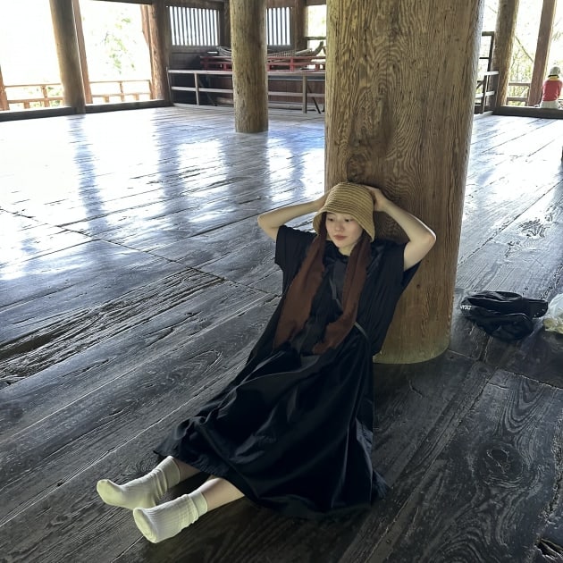 149cmの私が着用すると、丈が膝にくるようなイメージです。