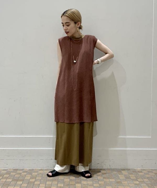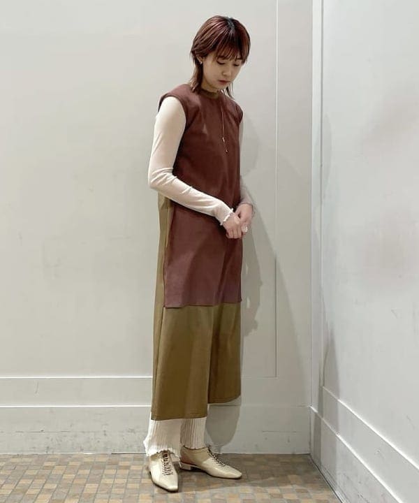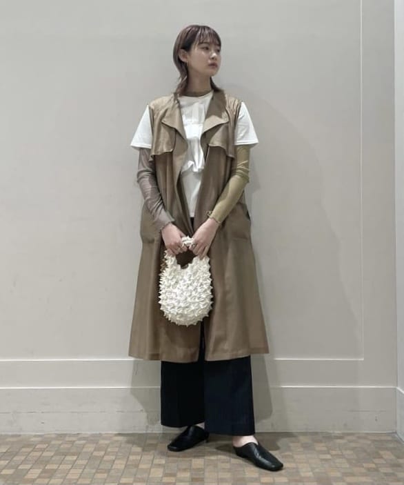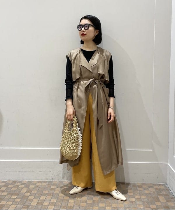 こちらはよーーく見ると丈の長さが少し違いますね!ベージュのワントーンで合わせるも良し、今の時期はインナーで差し色を入れるのも良しです◎