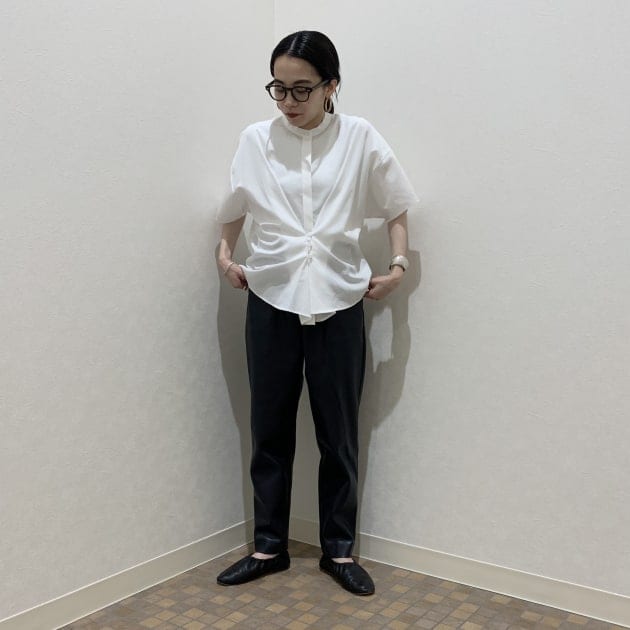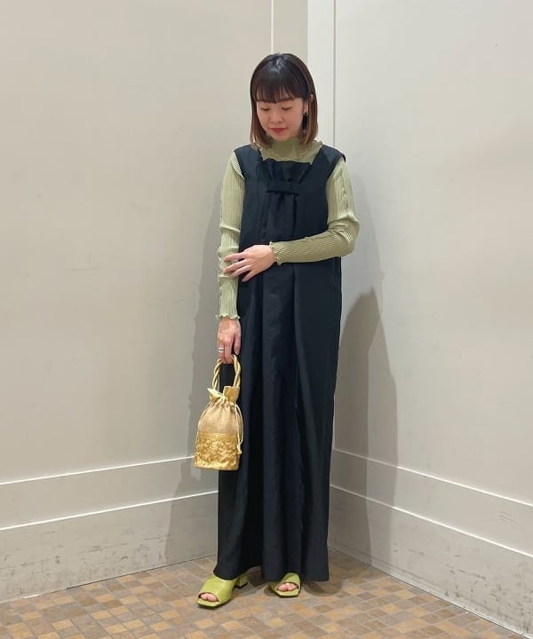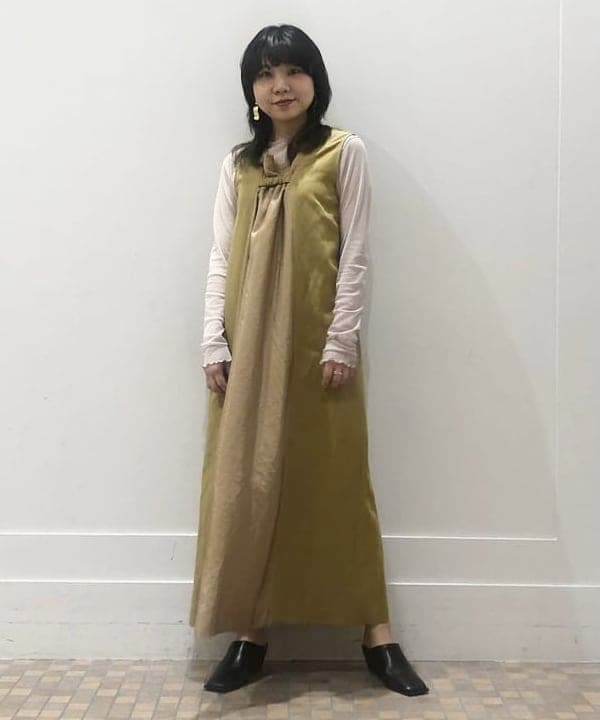 スタッフの中でも飛び抜けたスタイルの持ち主キヨはワンピースの中にパンツを入れることで、<丈短くなりすぎちゃう問題>を解消しています!またパンツと同色のシューズて合わせることで統一感も出てますね◎