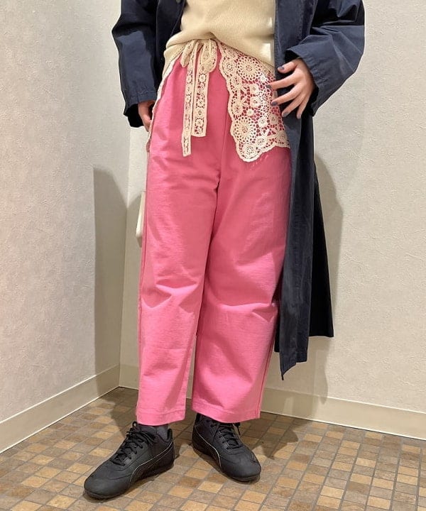 カラーパンツ一枚で着る勇気が無いなぁという方、チラ見せでぜひ挑戦してみてください。