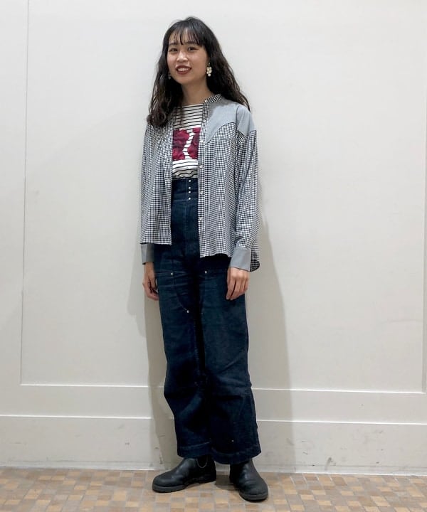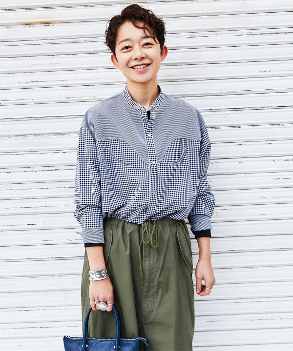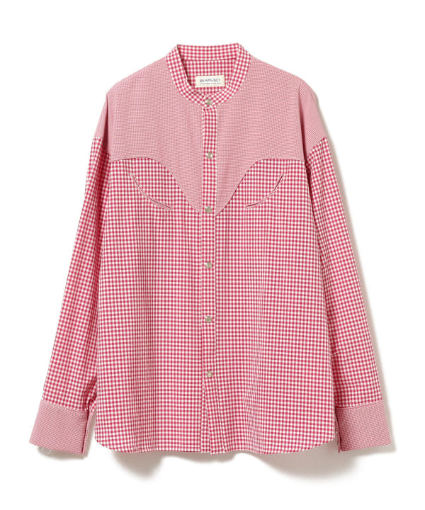 <BEAMS BOY> / ギンガム ウェスタン ノーカラー シャツ