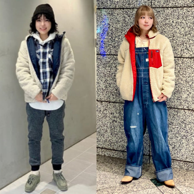 キルト加工のダウン・セーター面と、パイル・フリースのレトロX面。