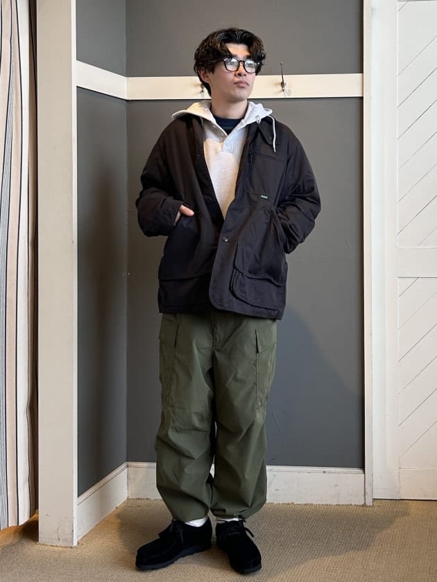 - ・アウターを短めに、パンツをワイドにすることでシルエットにメリハリを
