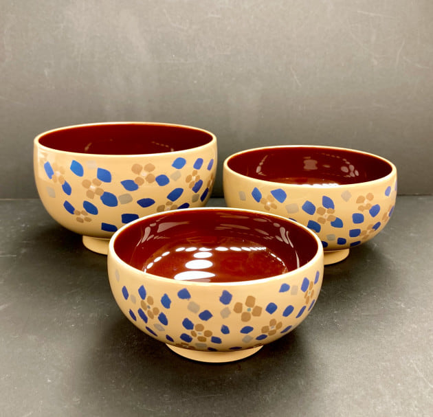 3サイズで入り子に出来るお椀セット。漆で仕上げ、更に職人が手作業で繊細な絵柄を表現。丼として、汁椀として、小鉢として食卓を華やかにしてくれるアイテムです。