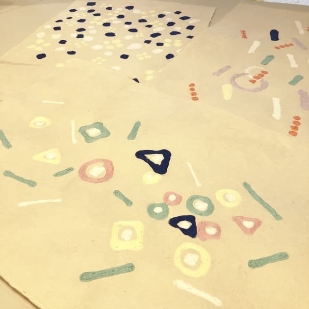 パステルカラーの色合いと手書きの温かな風合いが魅力のA3サイズ和紙。のんさんデザインの原画を職人さんが丁寧に写し完成した画。簡単そうに見えて、色合いを均一することや正確に写すことはとても難易度が高いそうです。額縁に入れてお部屋に飾るだけで素敵な華やかな空間になりますね。