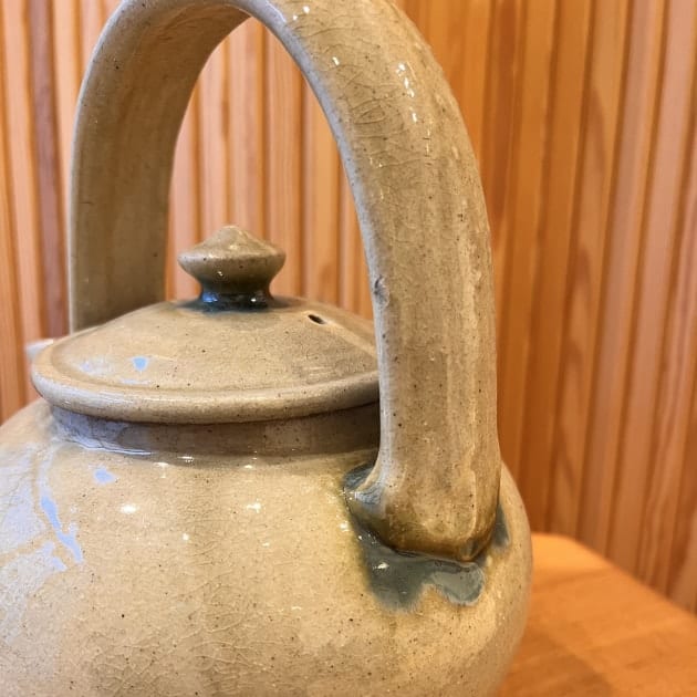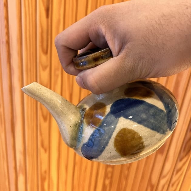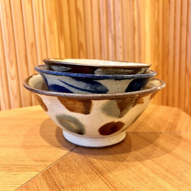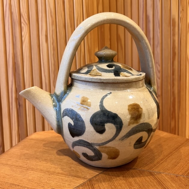 沖縄らしいイッチンの絵付けや緑釉と飴釉薬のコントラストとリズミカルな柄が楽しい点打ち、