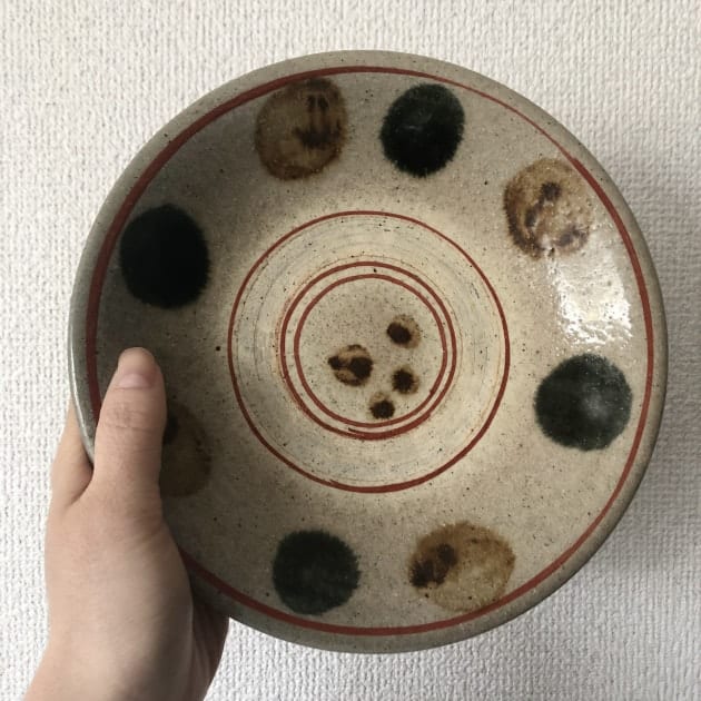 こちらは尺皿と呼ばれる直径30cmを超える大ぶりなお皿です。fennicaではお馴染みの作り手、沖縄-松田米司窯によるもの。