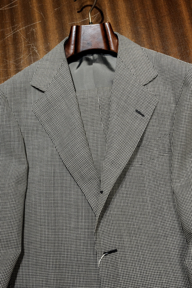 ご存知の方もいらっしゃるかと思いますが、このシングルのハンドメイドラインのスーツにこういうハウンドトゥースが採用されたのはこれで2回目。1回目の際に購入を悩んでいたら完売してしまい、悔しい思いをしたのでリベンジしたいという気持ちから、猛プッシュしました笑
