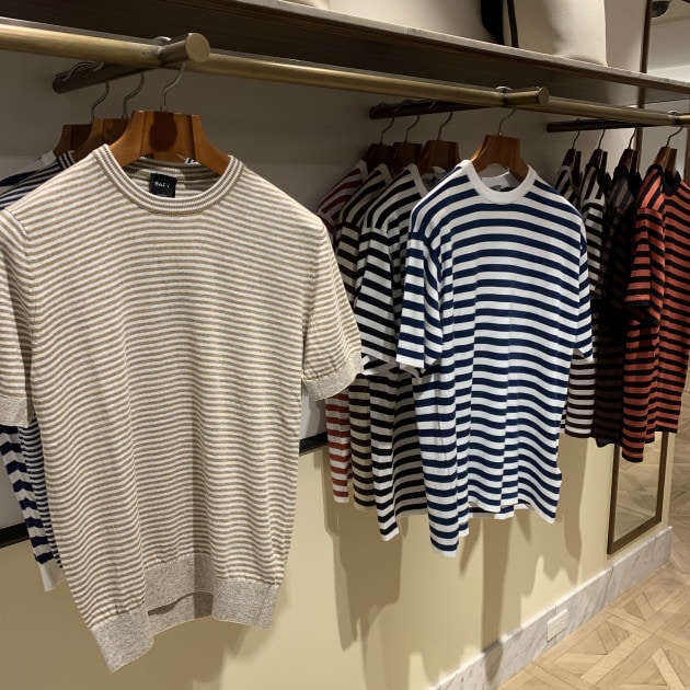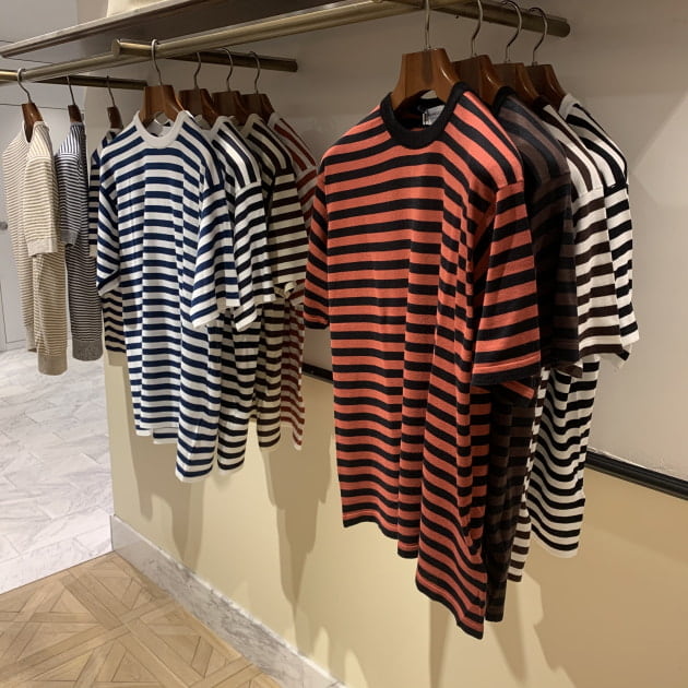 今シーズン、外せないアイテムとして幅広いバリエーションでラインナップしているボーダー柄。カットソー、ニットT-シャツの品揃えはなかなかのものです。