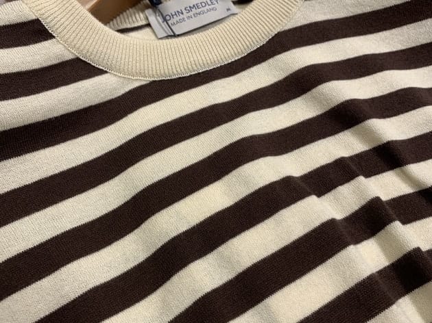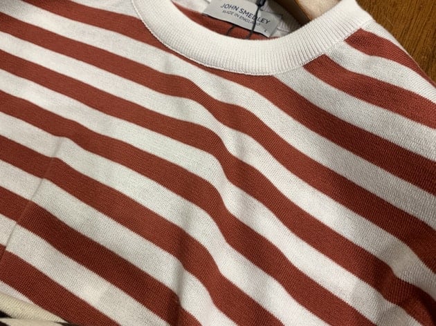 その中でも、代表格と言っていいかもしれません。今更感も少々ございますが、<JOHN SMEDLEY>のボーダーニットT-シャツをご紹介します。