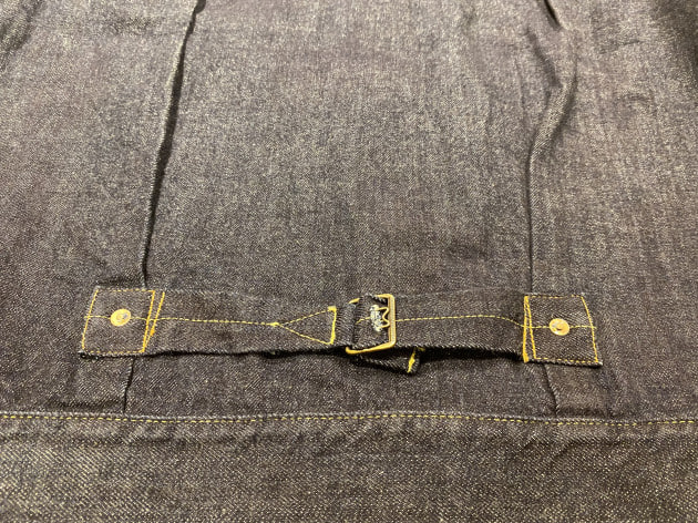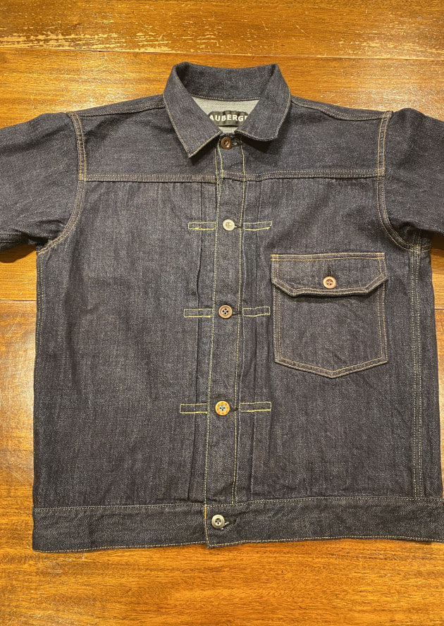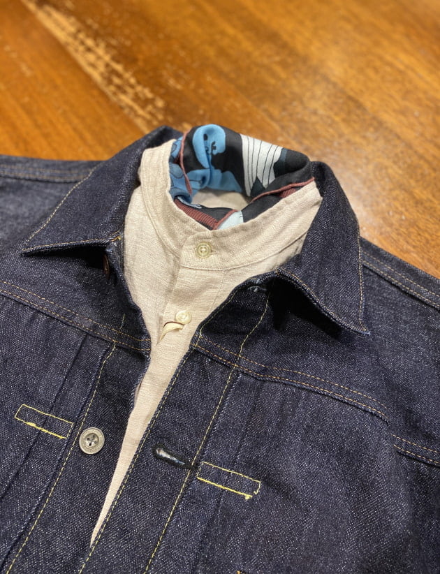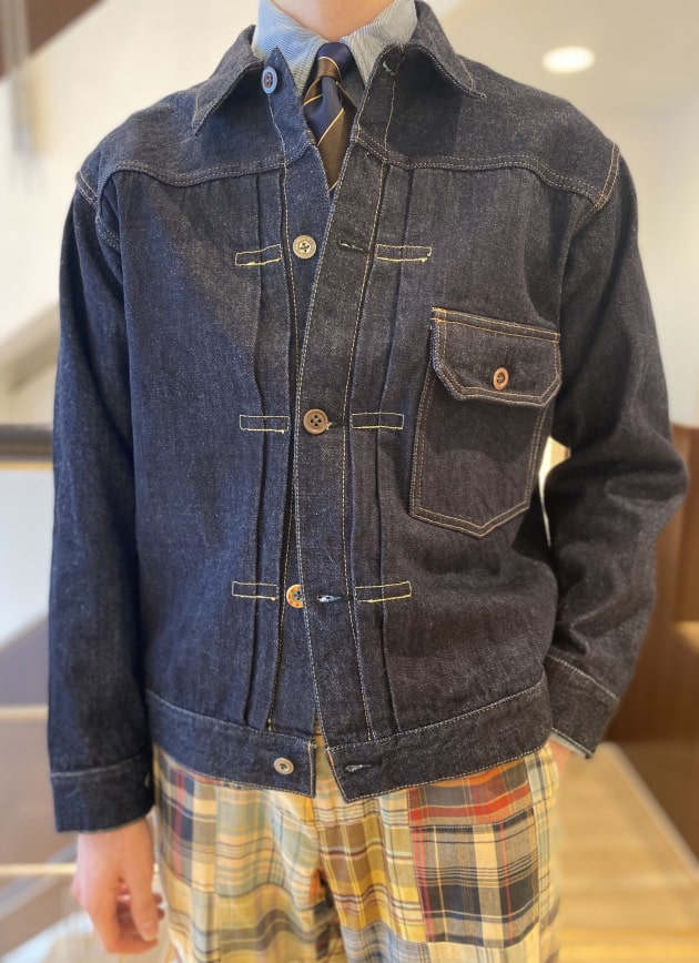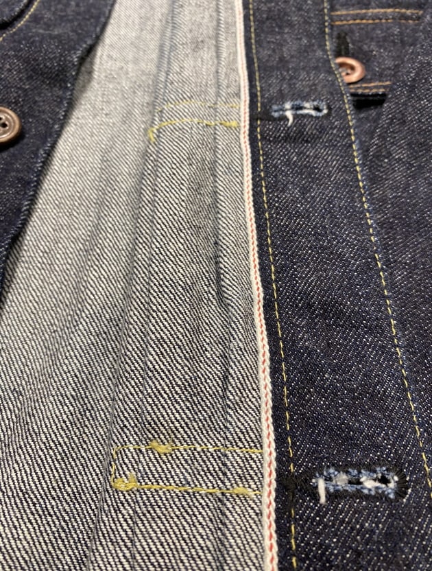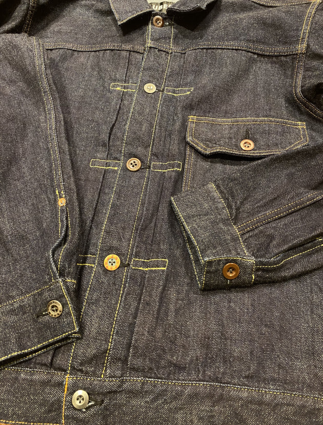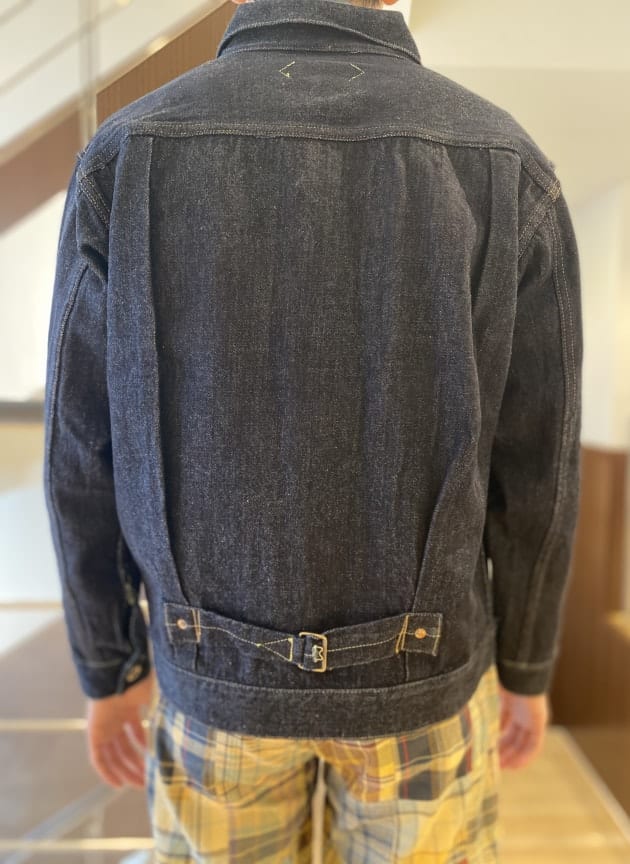 秋冬物ですがこのモデルは半裏仕様です。素材感的にも3シーズンで着用できそうなデニムジャケットです。裏から見てもデニムに見えますね。
