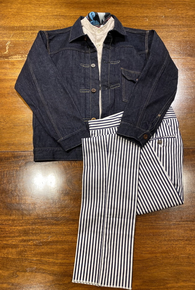 デニムジャケットやブレザーには非常に良いマッチングだと思います。セットでご購入頂きたいくらいですね笑