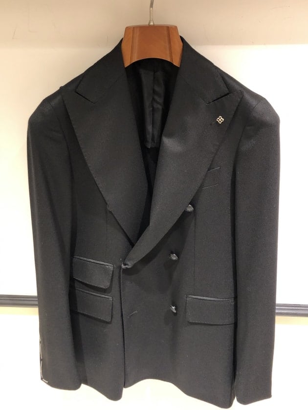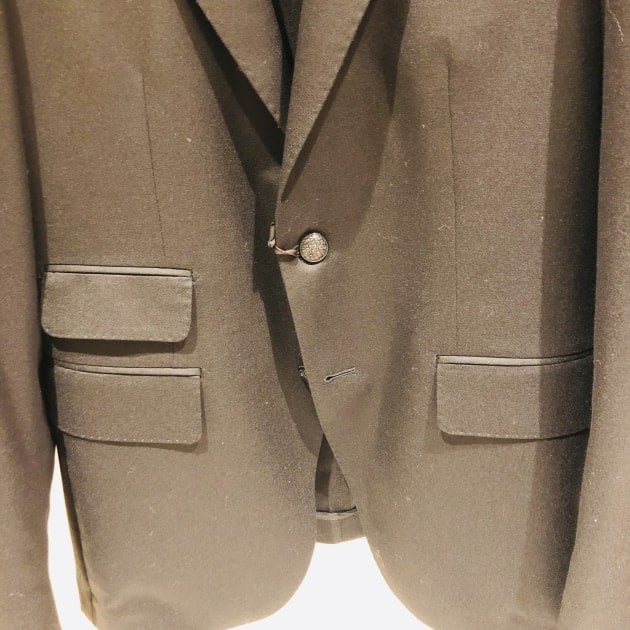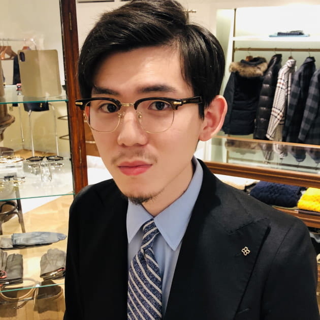 今回はチーフを挿さずにサングラスで抜け感を出しました。チーフを挿すようであれば出来れば無地が良いと思います。