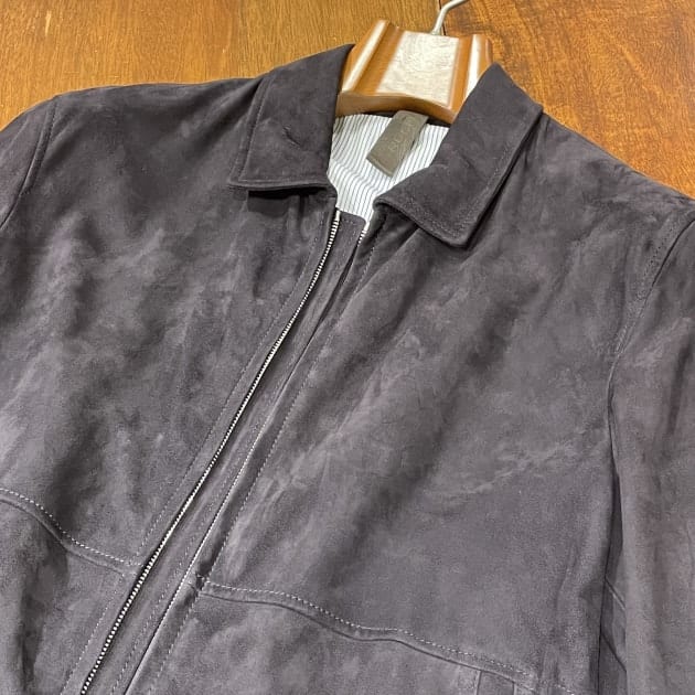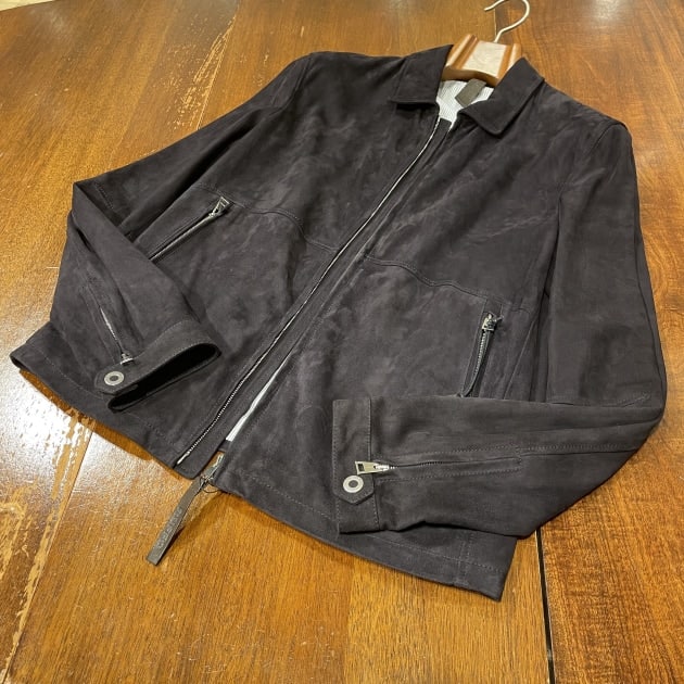ゴートスエード素材の襟付きジップアップブルゾンです。20%OFFで上記のセールプライスとなりました。