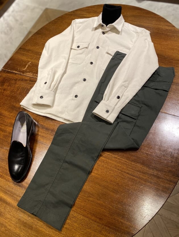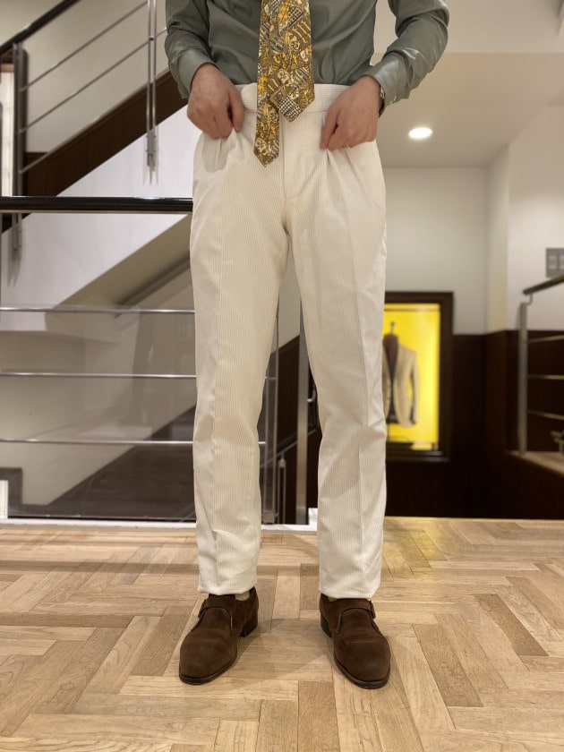 シャツはアイボリーカラー。