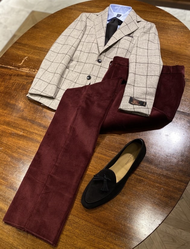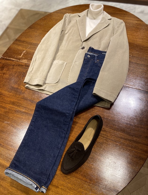 ヘリンボーンジャケット、コーデュロイと