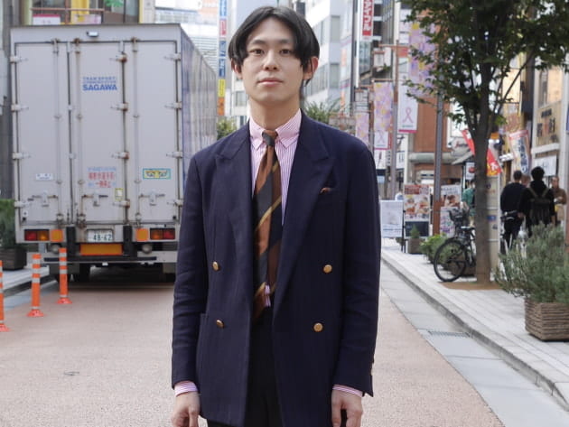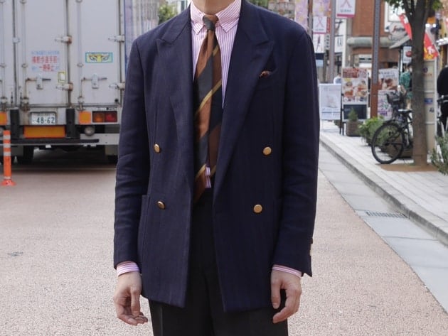 端正なピークドラペルに