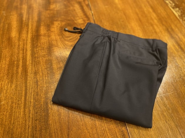緩やかなデーパードシルエットです。細過ぎない感じが良いですね。綺麗目な雰囲気でお召し頂けるイージースラックス。そんなイメージでしょうか。