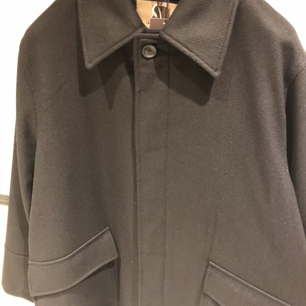 <BEAMS F>レーベル別注モデルのDUNKELD SHORTです。基本デザインはシンプルなステンカラーコート型。