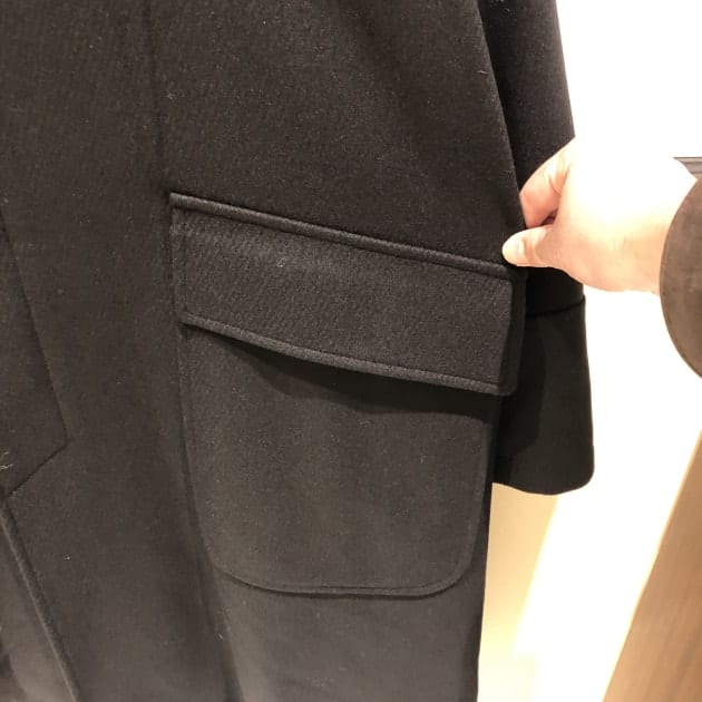 スタッフ伊藤着用サイズ36。スーツの上に着ています。軽快なショート丈。ここ最近のアウターはロング丈が主流でしたから、少し新鮮な見え方ですね。