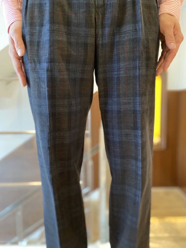 BERNARD ZINS CHECK TAPERED TROUSERS