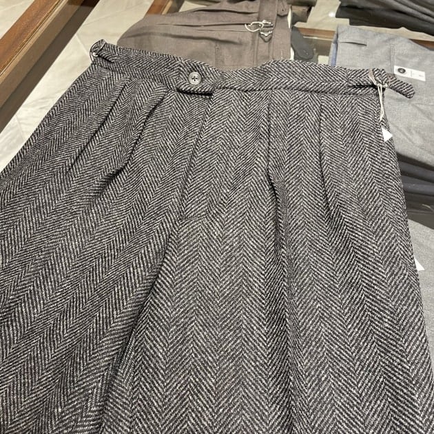 今時期だとツイードや、ホームスパンなどカントリーテイストの洋服にもお勧めです。