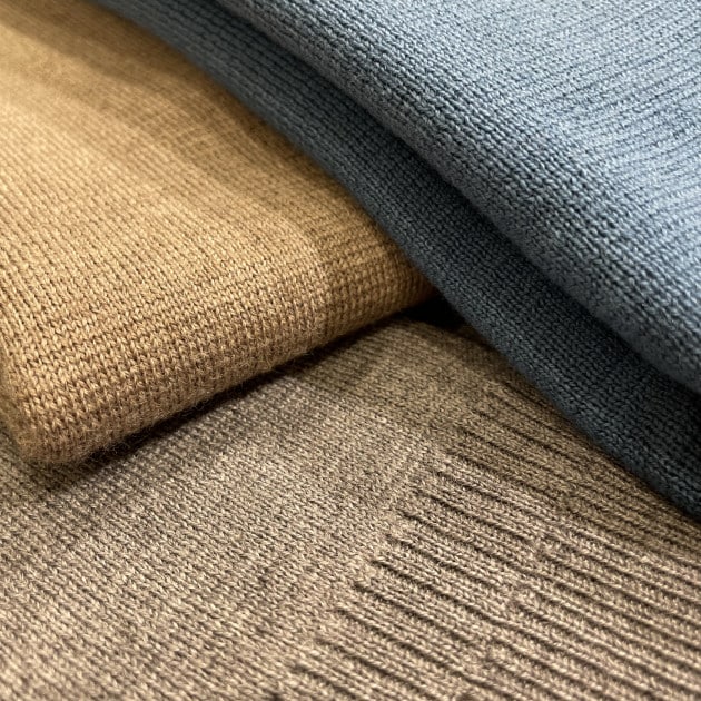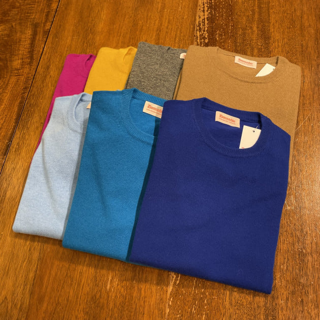 高品質なスーパージーロンラムズウールを使用した美しい発色が魅力のニット。色の展開も豊富です。
