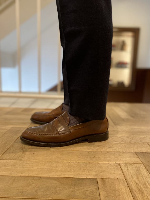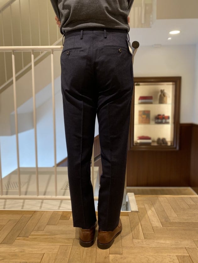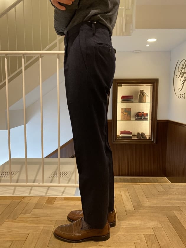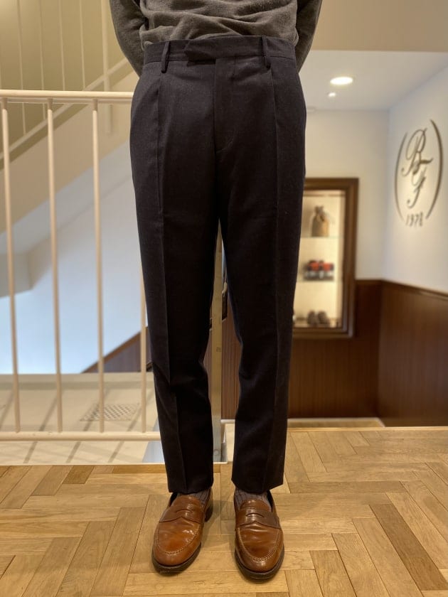SIZE.46で裾幅はおよそ平置きで18cm。