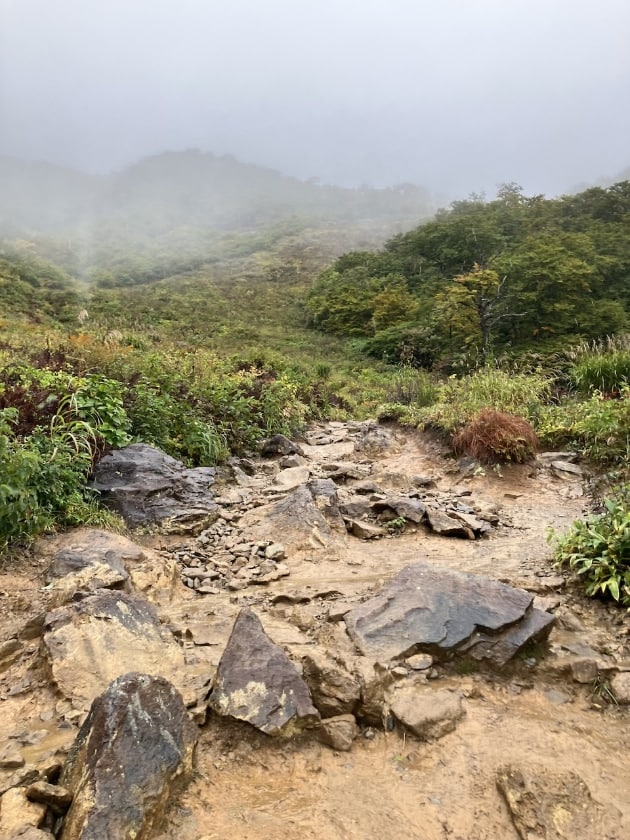2時間弱かけて登り切りましたが、この日は生憎の天気で頂上からは何も見えず、、、