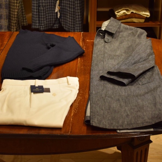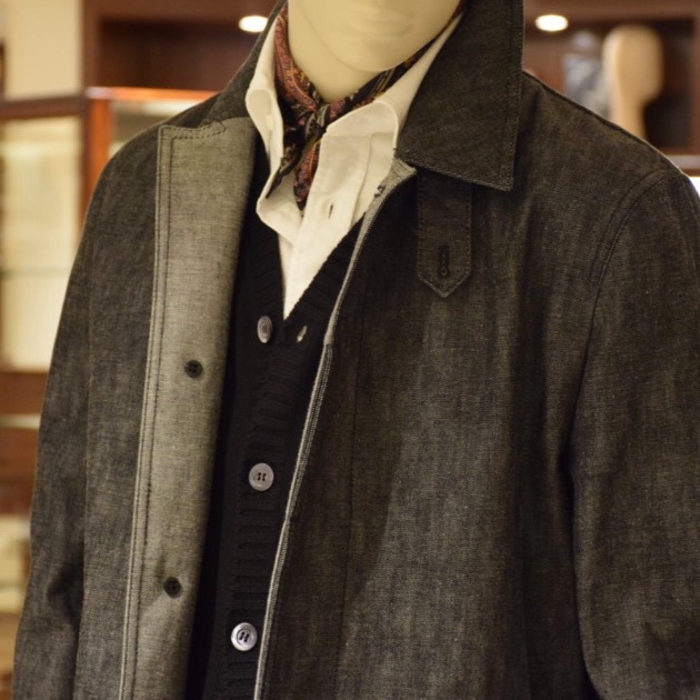 <BEAMS F>が<MORGANO>に別注をかけ、襟元も上品な雰囲気。