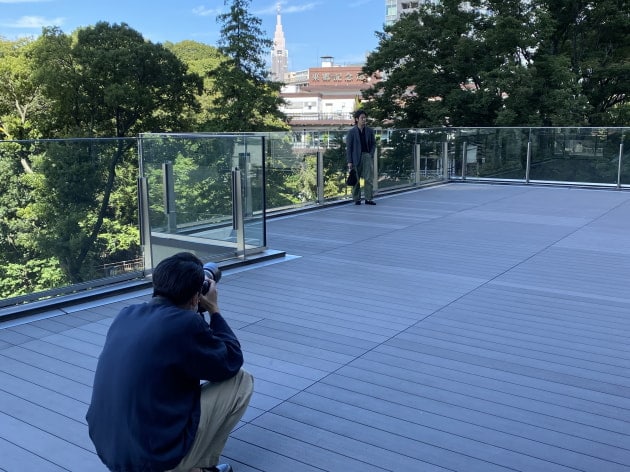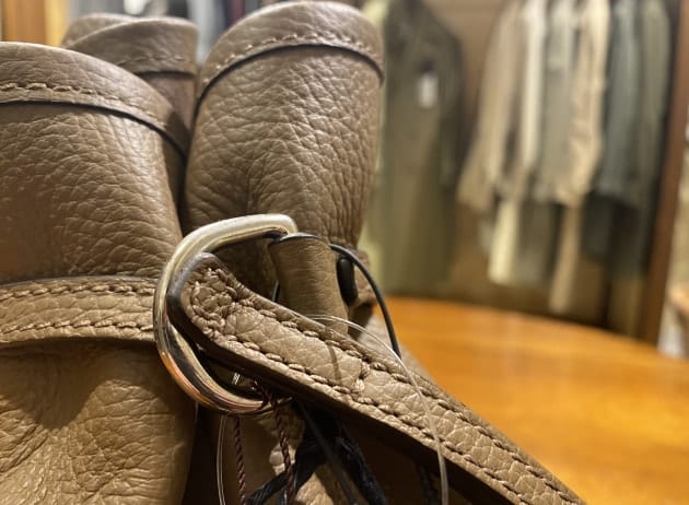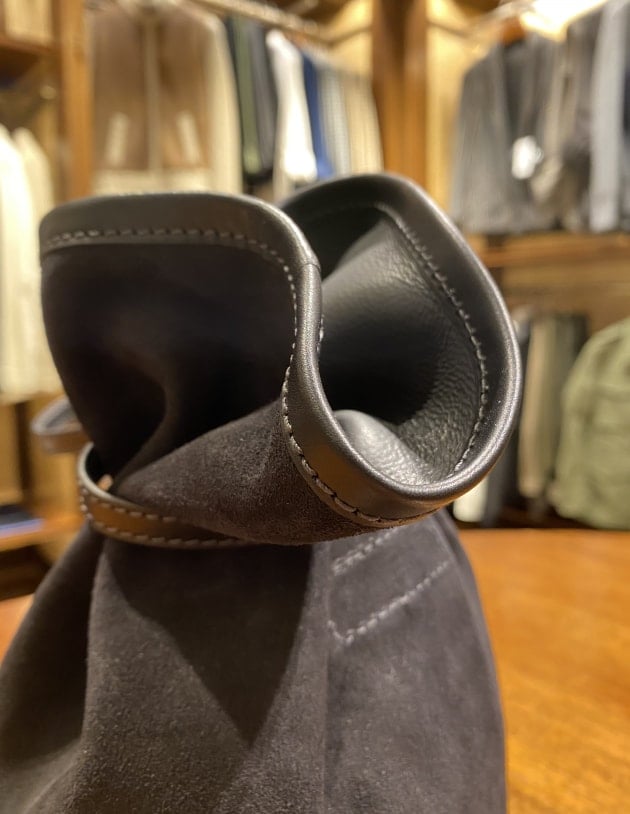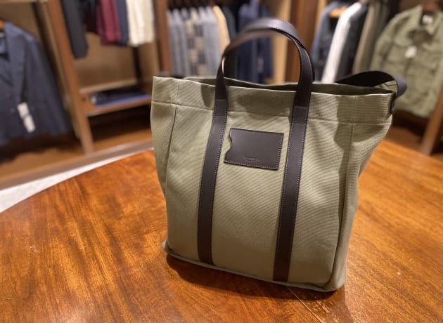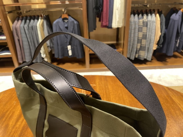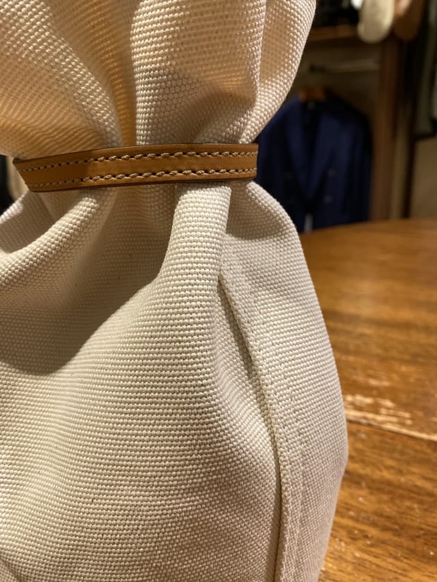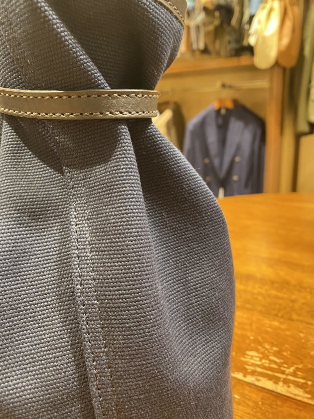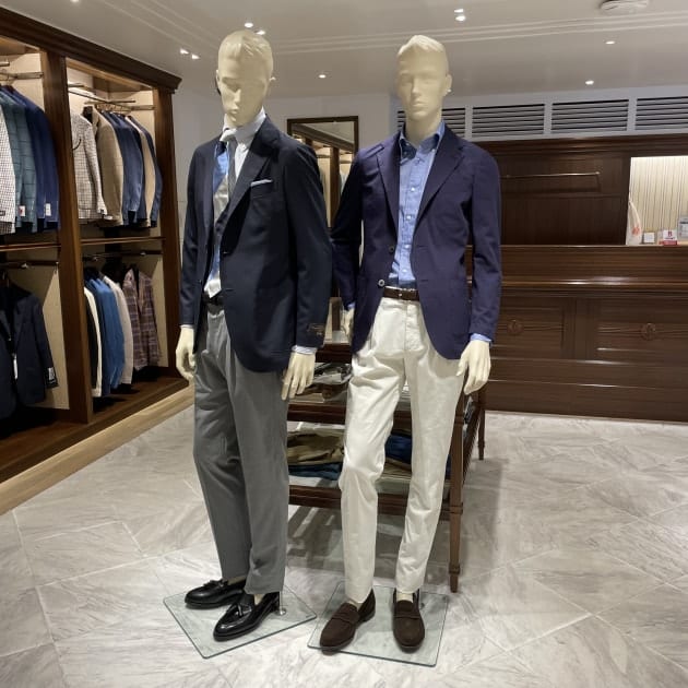 ボタンダウンカラーです。先ほどのカラミ生地モデルよりも、ややカジュアルな印象ですね。ビジネスユースだけでなく、今シーズンは外国人観光客の方にも人気のモデルとなっております。