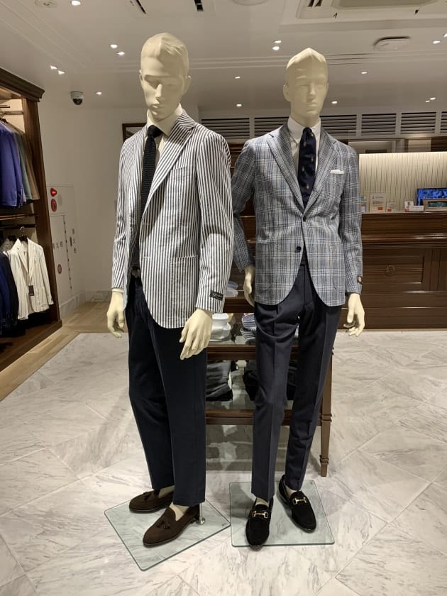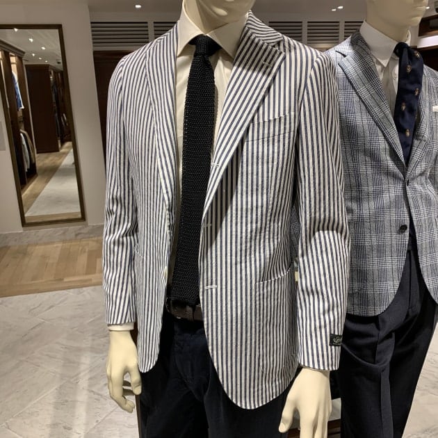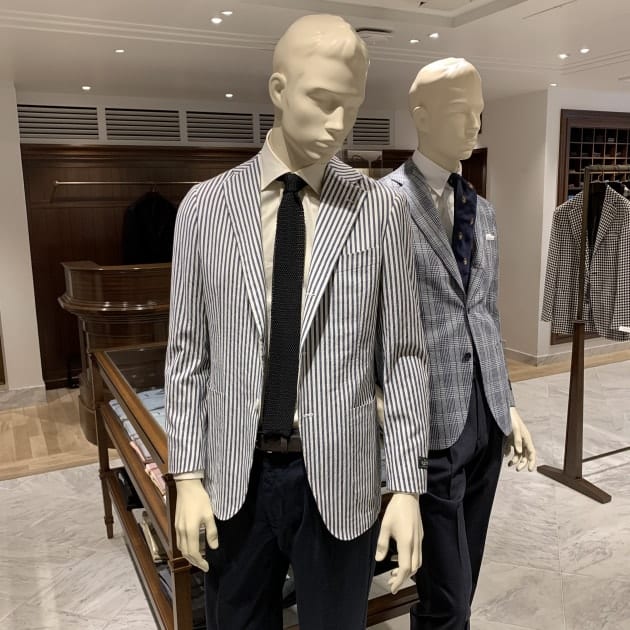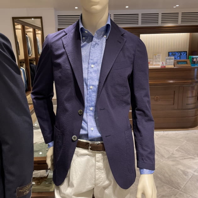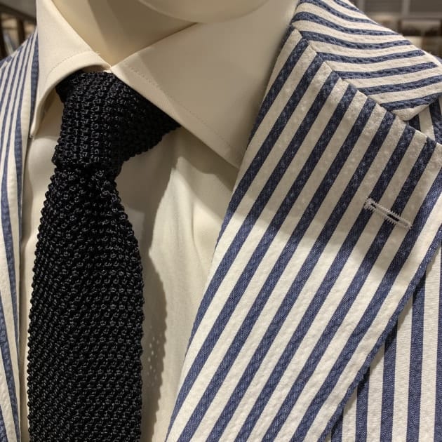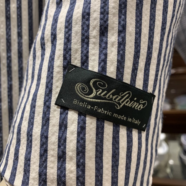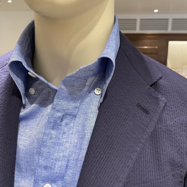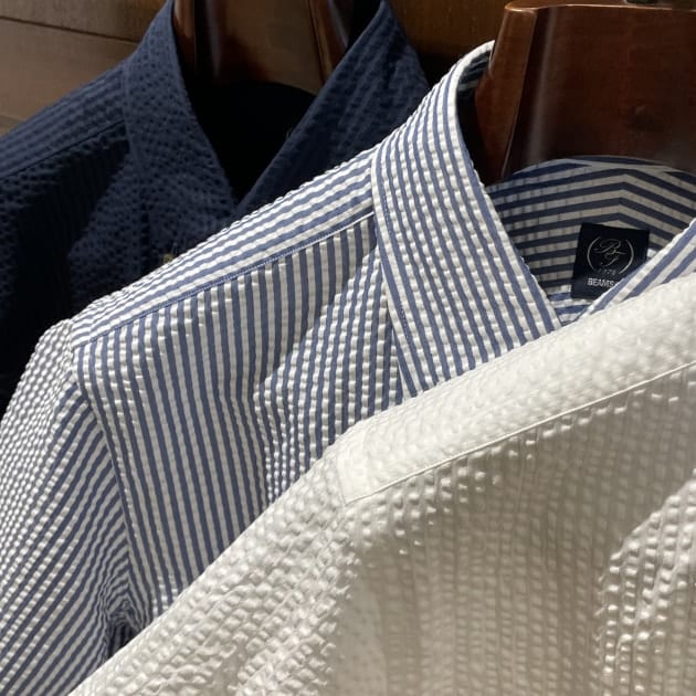 続いてはシアサッカー。襟型はボタンダウンです。