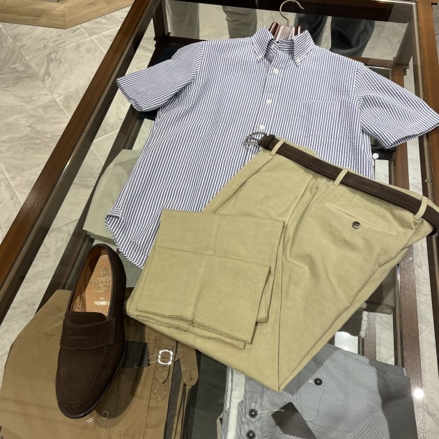 所謂クールビス的な、夏のビジネススタイル。夏場のデイリーなスタイリングはこのような感じの方も増えてきたのではないでしょうか。