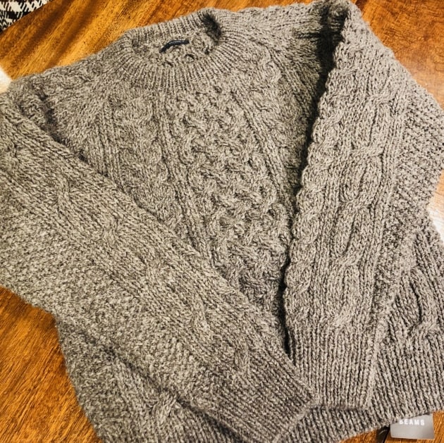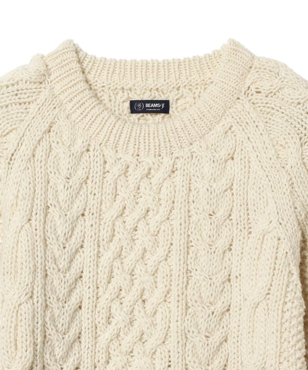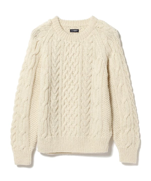 メイドイン・イングランドの<BEAMS F>レーベルオリジナル。ケーブル編みのクルーネックニットです。4色展開。