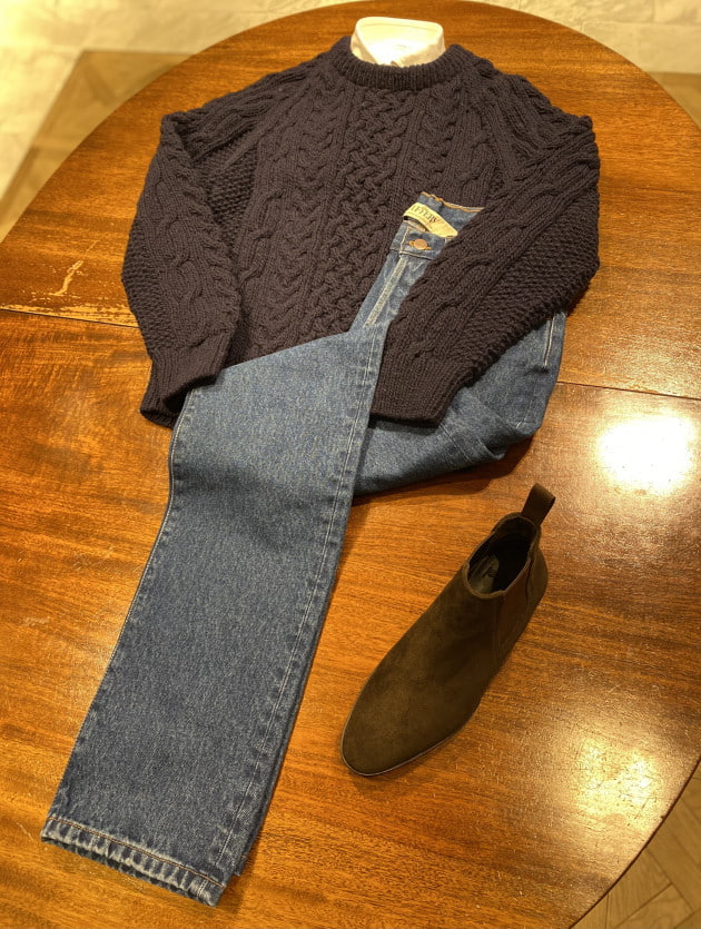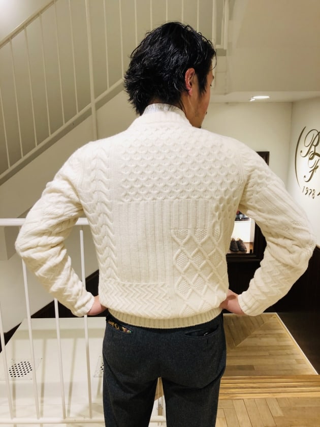 いくつかのニットブランドでケーブル編みを展開予定ですが、今季注目のディティールですね。少し懐かしいような、素朴な風合い。