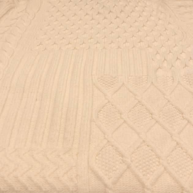 サイズスペック、ケーブル編み地を指定した今季の新作。英国のスーパージーロンラムズウールを使用し、美しい発色のニットに仕上がっております。