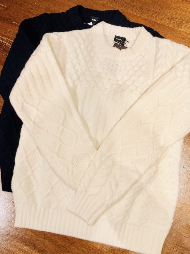 本日のご紹介はニットです。9月後半になり徐々に充実のニット類。今年も多彩なバリエーションでご用意しております。オリジナルからも注目の新作モデルが↓