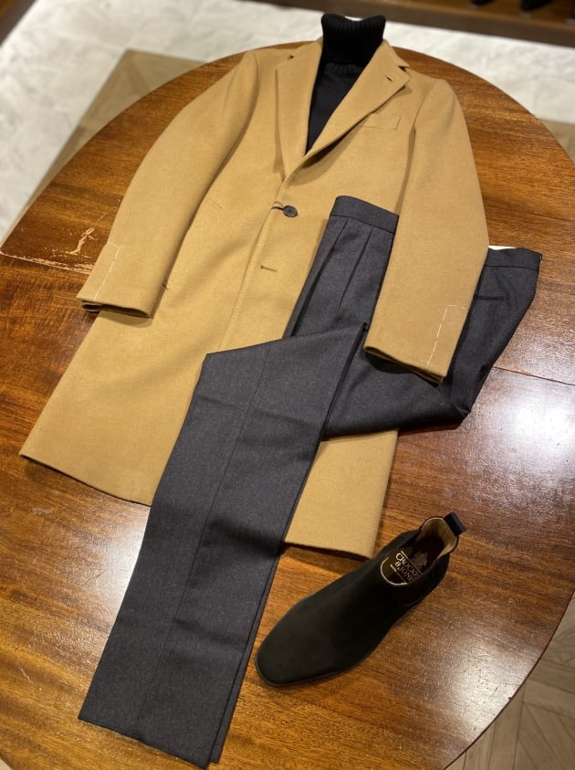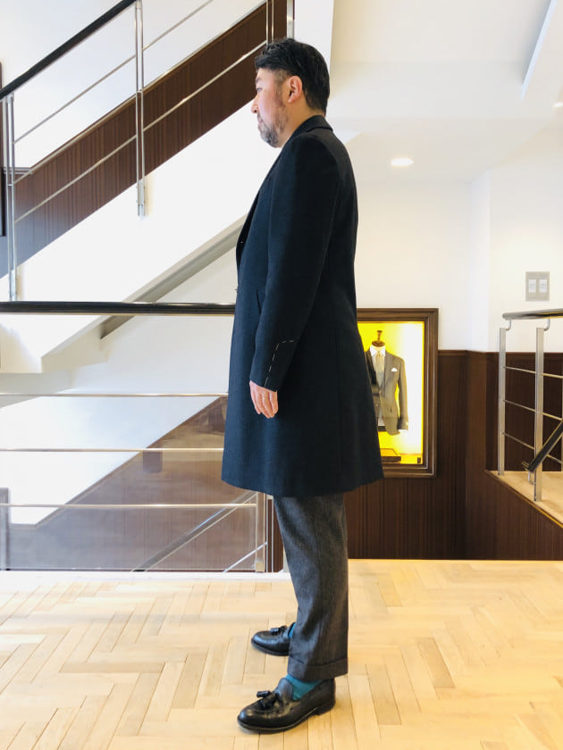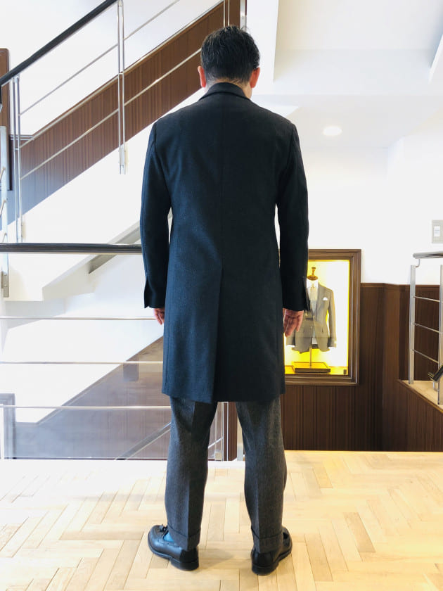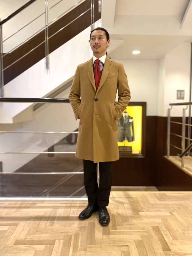 スーツ、ジャケパン、なんならカジュアルスタイルに合わせることも可能なコートです。汎用性の高さも魅力です。