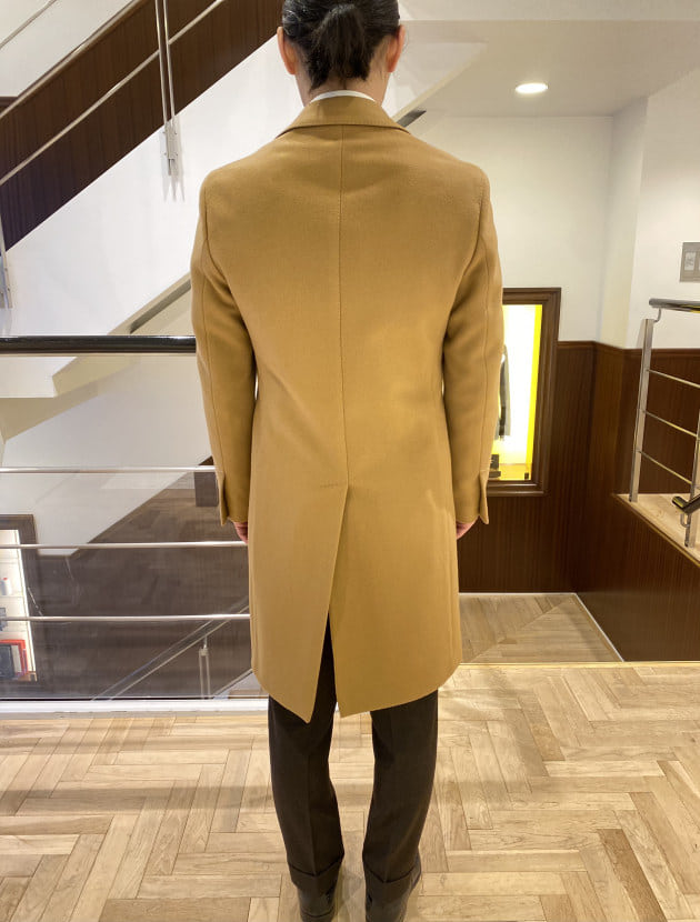 ハーフライニングです。着丈の長さは膝丈程度。一昔前のシングルチェスターと比較すると、全体的にややゆったりのフィッティングになっているのがポイントでしょうか。