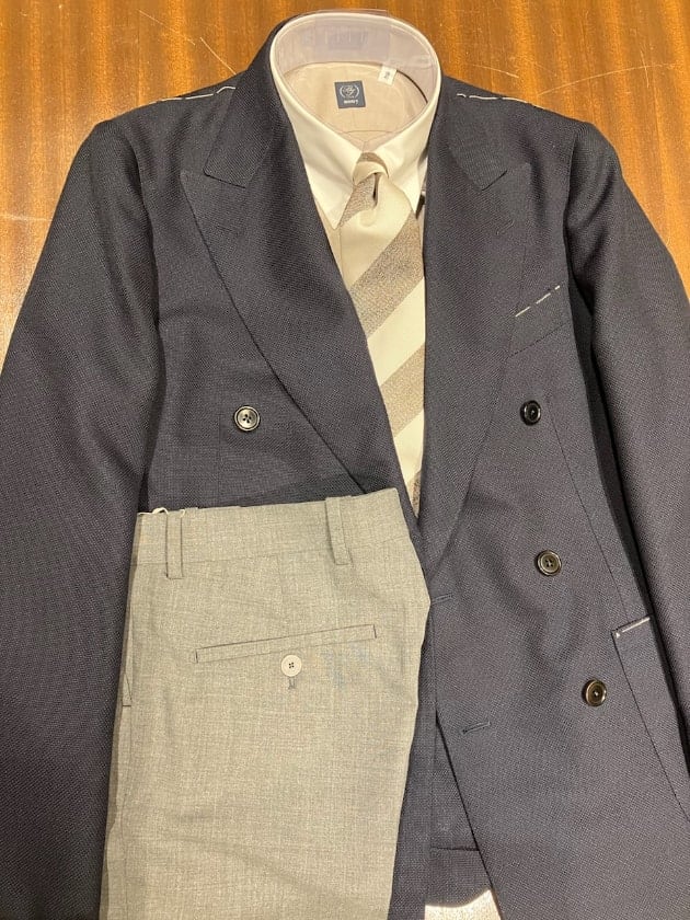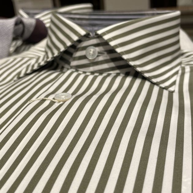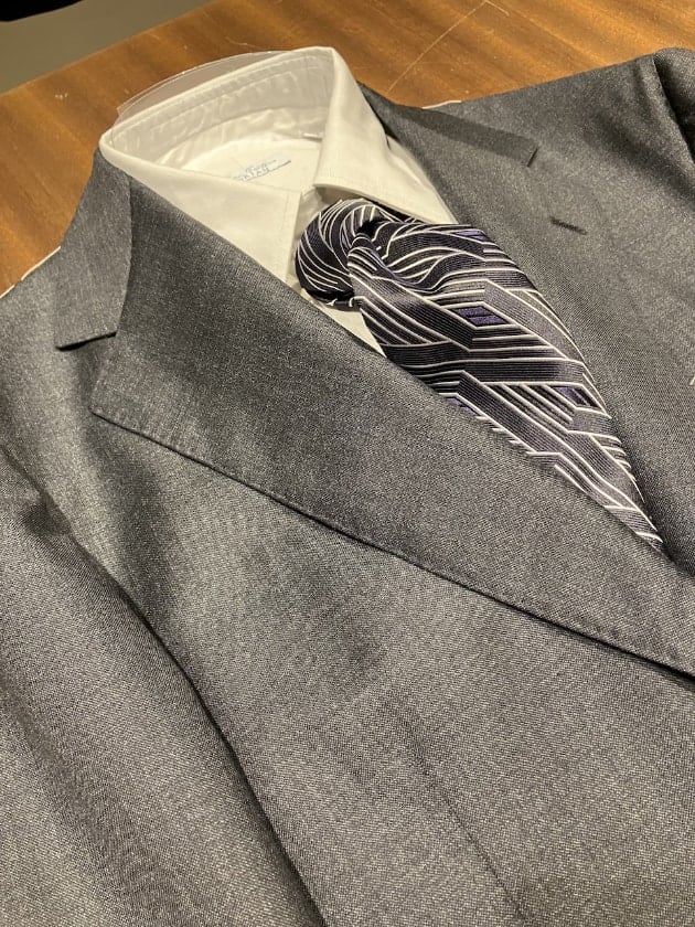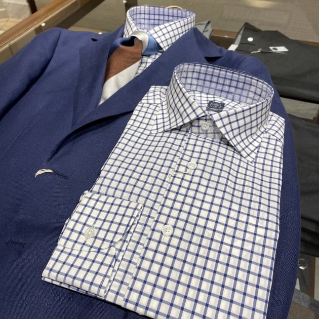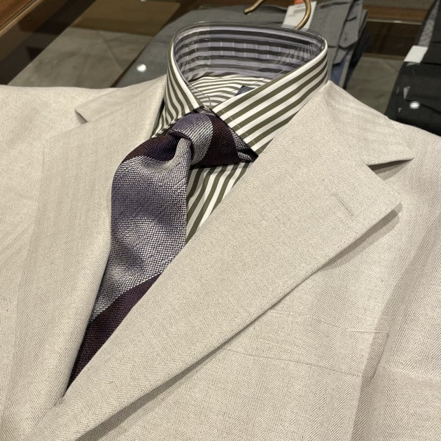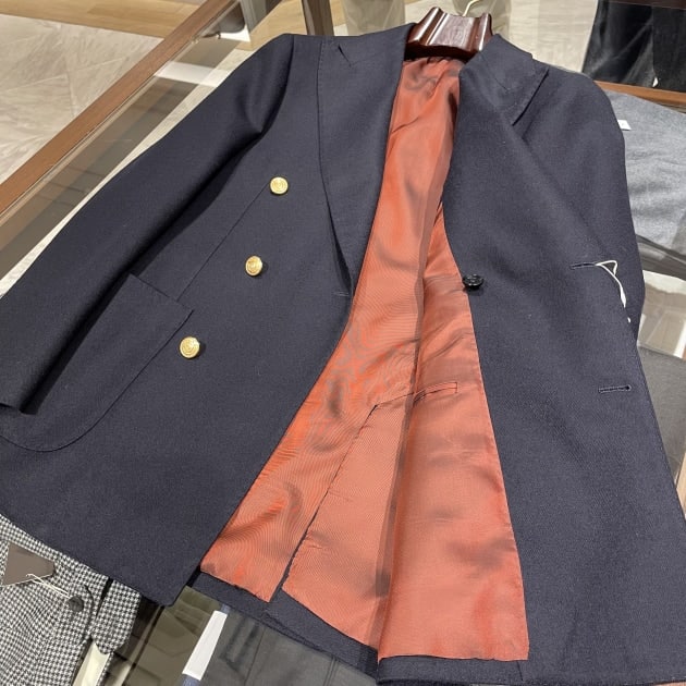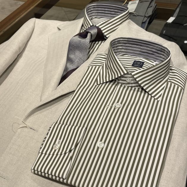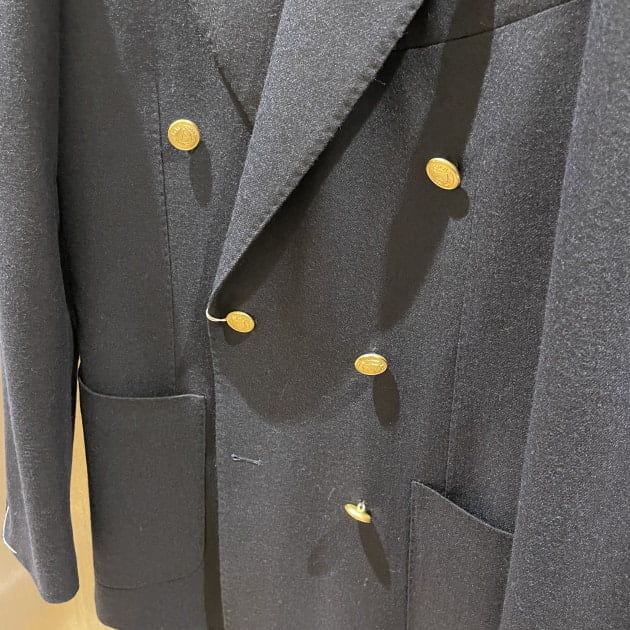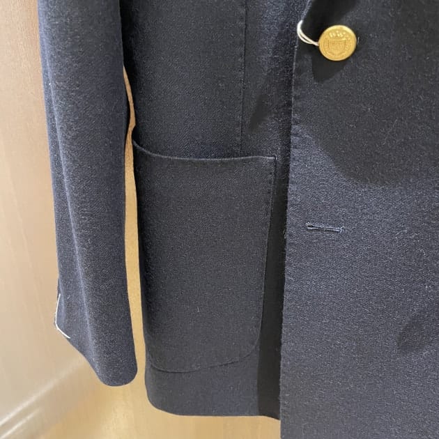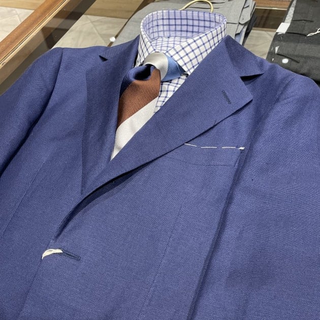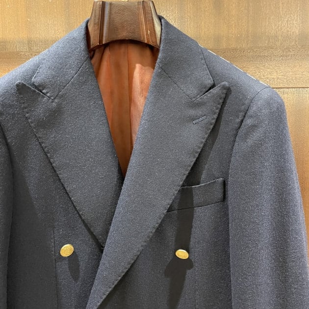 襟型はここ数シーズンですっかり定番となったレギュラーカラー。何度も申し上げていますが、このカラーステイを抜いた際の柔らかい表情が良いんですよ。