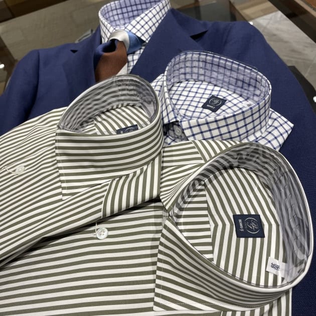 この二枚はなんといっても生地の色が最高ですね。ポプリンの絶妙な光沢にこのニュアンスカラーの組み合わせ。たまりません。