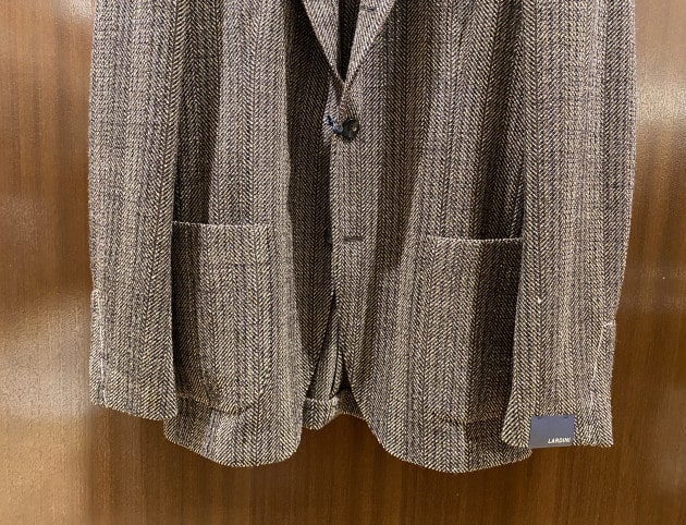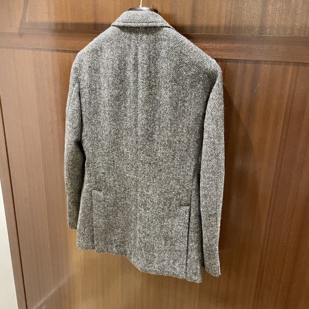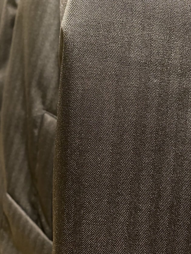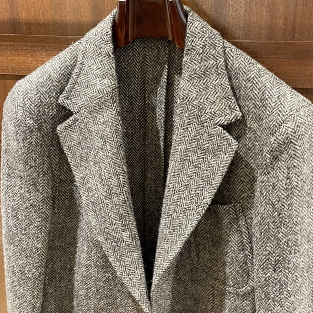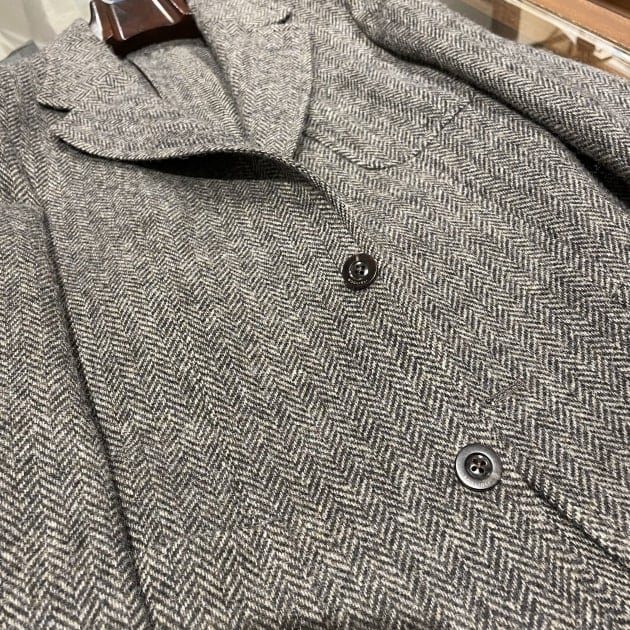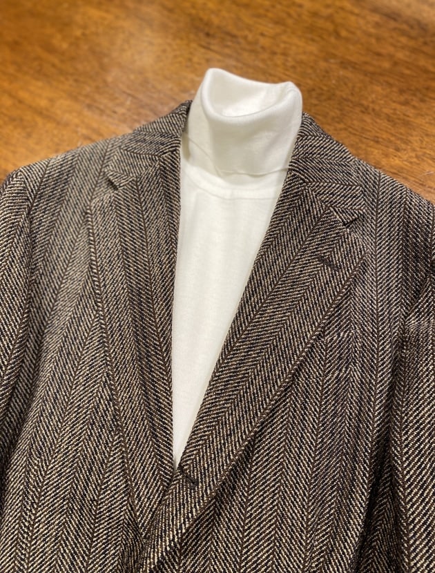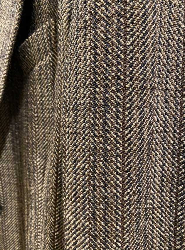 生地はLT.BROWNのヘリンボーン。ソフトツイードですね。見た目に反してソフトなタッチ。軽さも感じられます。色の見え方はかなりグレイッシュでほんのりブラウンという感じでしょうか。なかなか雰囲気ありますよ。
