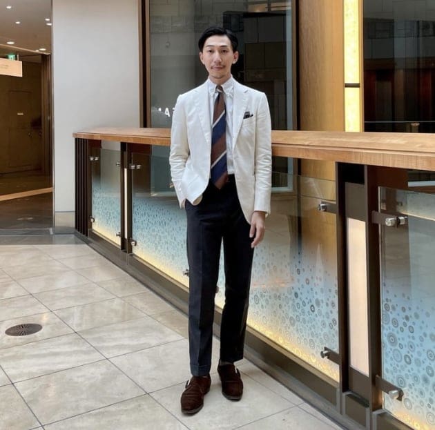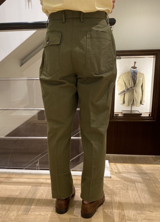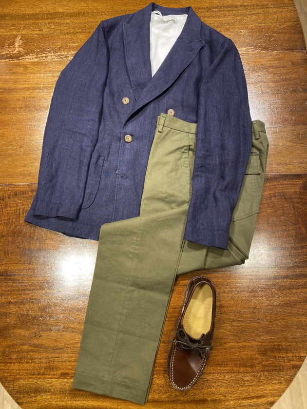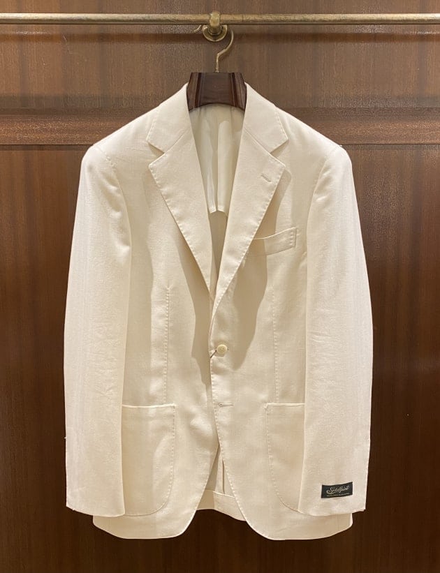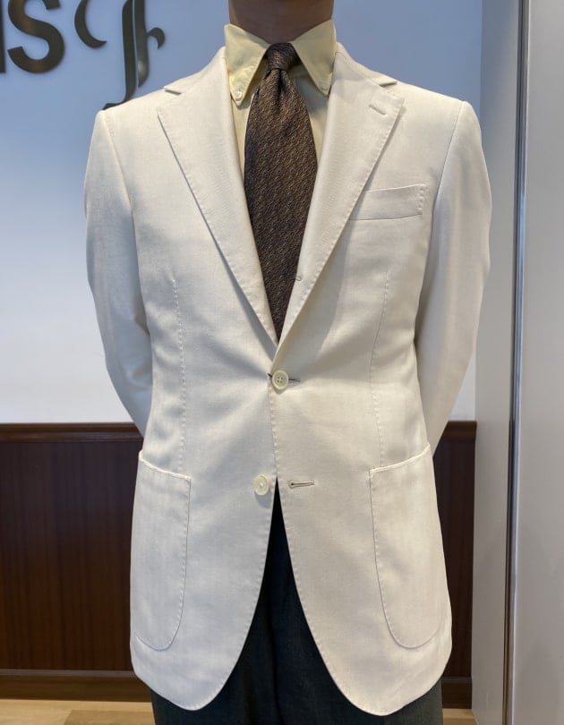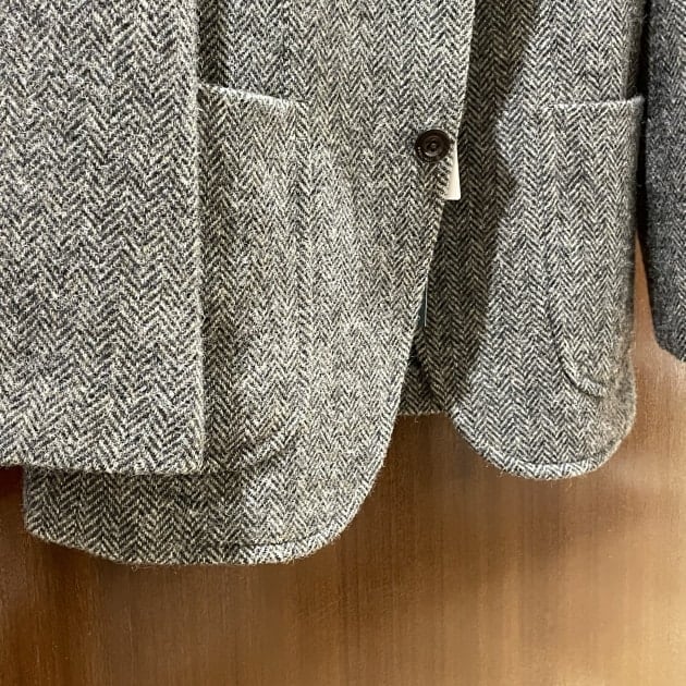 前下がりの効いた長めの着丈バランスも特徴的。既製品で3パッチジャケット自体が少し珍しいので、新鮮さを感じて頂けるジャケットかと。