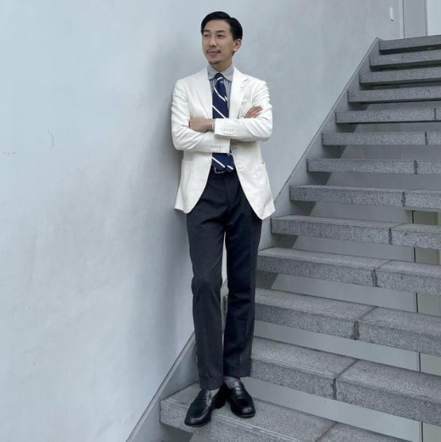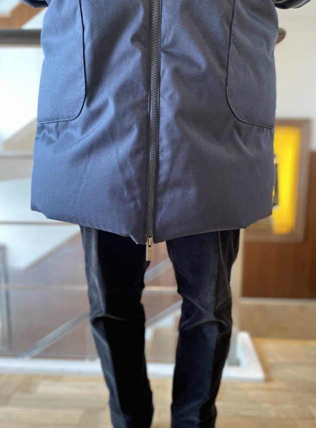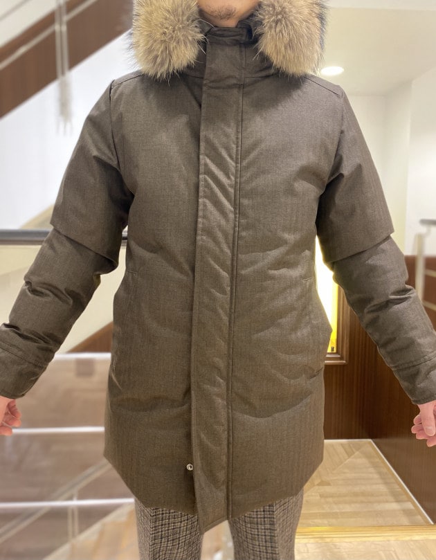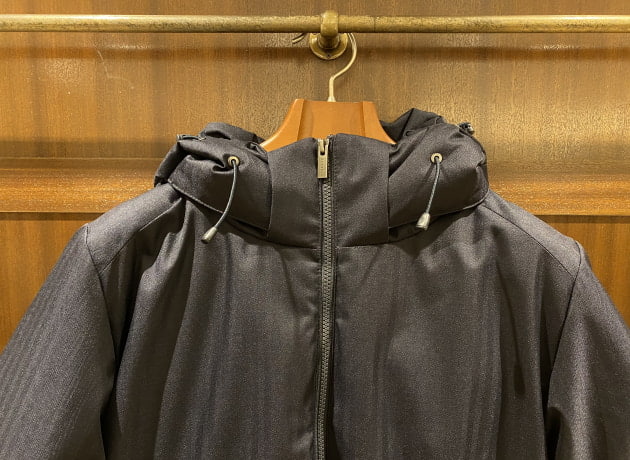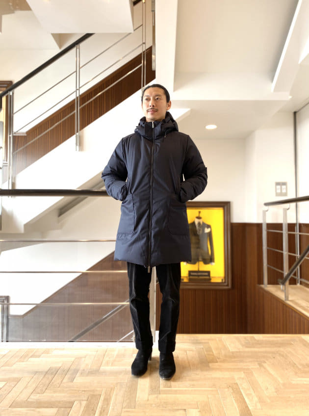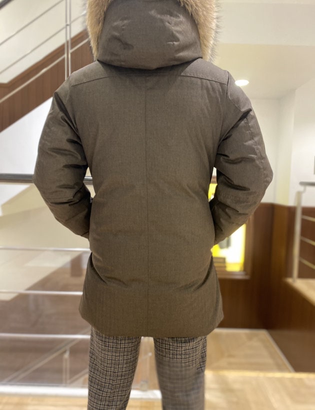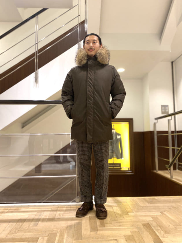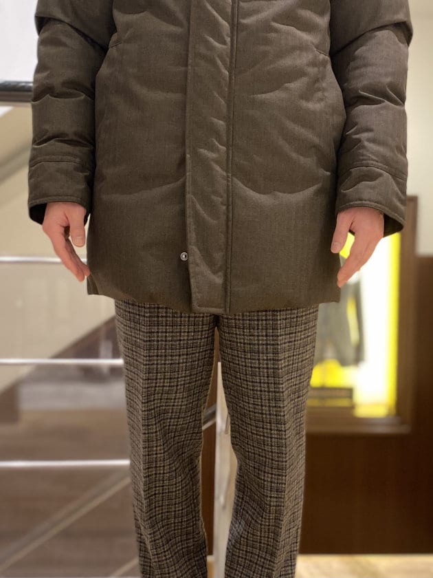 (暖かそうなコーディネートで恐縮ですが)コーディネートはやはりスポーティーな感じが良いでしょうね。ジャケットのバランスからすると、少しワイドシルエットのパンツがよく合いそうです。タッターソールシャツとのコンビネーションも良いですね。今回はタイドアップさせましたが、個人的にはカラーニットをインナーに挟みたいです。ビビッドな発色のレッドやイエロー。そんなレイヤードも良い雰囲気ではないでしょうか。妄想が膨らむジャケットですね笑